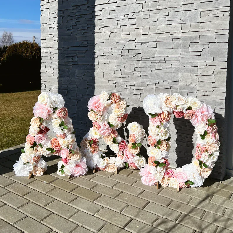 Per letter 150 cm bij hoog bij 90 cm breed. Andere afmetingen zijn uiteraard ook mogelijk, laten we hierover afstemmen